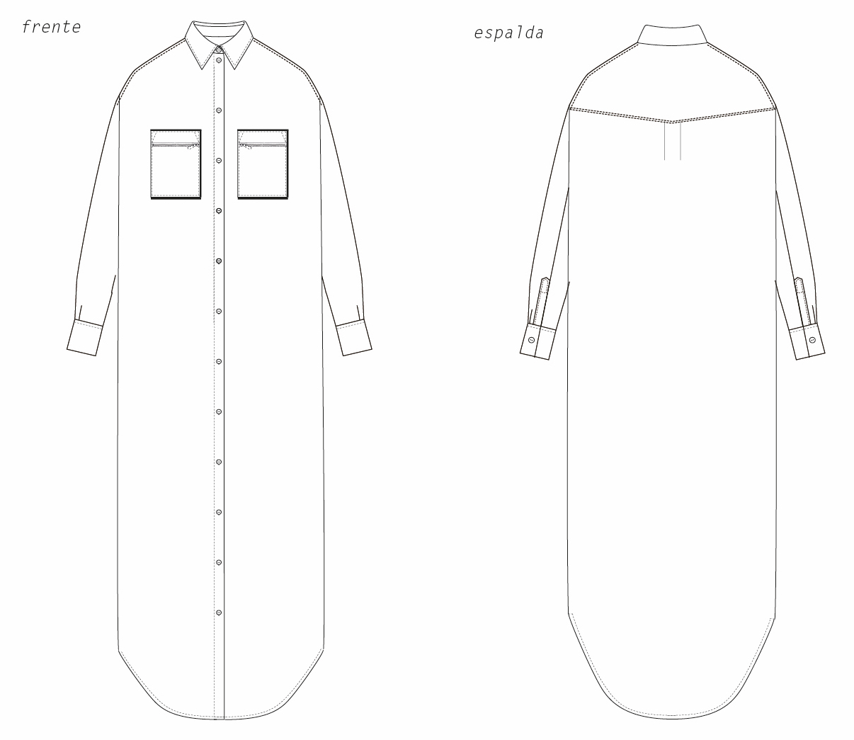 | Beneficios funcionales | • Silueta amplia y cómoda para múltiples cuerpos. • Bolsillos 3D realmente funcionales. • Tejido suave con gran caída; sirve como camisa, vestido o sobreprenda. |